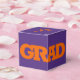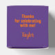 KLASSIFICERING i fetstil med orange, radbrytning runt framsidan av de här lila 2-tums fyrkantiga studentfesterna med ditt namn och tack för ditt meddelande längst upp. Fyll med behandlingar som ett tack till gästerna vid din studentfest. MATCHING-objekt och mer färg i vår samling.