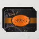 Orange och svart studenten-inbjudan med blommigt för ljus och mörk orange och ett band för orange som går över och visar året i studenten. Kortets baksida är svart med lätt typsnitt för orangen så att människor kan fylla i tillkännagivande för studenten.