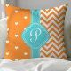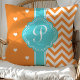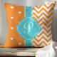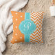 Lägg till en färgklick och personlighet i ditt rum med denna livfulla orange och turkosa kastkudde. Med ett lekfullt mönster av hjärtan och chevroner, tillsammans med ett anpassningsbart monogram, är denna kudde perfekt för att lägga till en touch av kul och stil i alla rum. De djärva färgerna och moderna designen gör den till en perfekt statementbit för ditt vardagsrum, sovrum eller kontor.