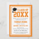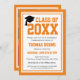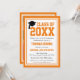 Denna inbjudan till Studentfest med Orange och vita foto är ett underbart sätt att fira högskolan eller högskolan student. Anpassa detta med namn, skola, år, party och student bild på baksidan. Inbjudan har fet typografi i orange färg med orange och vit gräns.