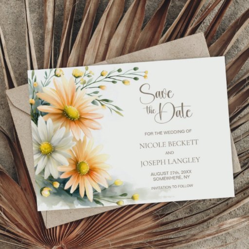 Orange och vita tusenskönor bröllopsdetaljer tilläggskort