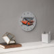 Detta är en återgivning av en klassisk bil som skapats med hjälp av kritor och markörer med digitalt tillsatt bakgrund.