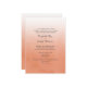 Den här eleganten har den moderna bröllopsinbjudningssviten en orange vattenfärgsbakgrund med en gradvis övertoning från vit till orange och mörk grått-text.