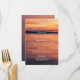 Det här menykortet i elegant bröllop har en romantisk solnedgångssiffra av Destei i varma orange- och lila-toner, skapar en sol och bjuder in atmosfär till firande. På framsidan finns en modig "Menu"-titel överst, följt av fyra organiserade sektioner för aptisatorer, kurser, efterrätter och drycker. Baksidan tillför en enkel och tankfull beröring med parets initialer, datum i bröllop och en liten hjärtsilhuett. Ett vackert tillägg till vilken bröllop som helst bord, särskilt för destinationshändelser eller solnedgångna evenemang.