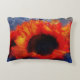 Den här accentkudden har en levande, målande bild av solblommor i orange, med olika stänk av färg i blått, kräm och grått. Lägg till en stänk av sommaren färg i vardagsrummet eller sovrumsdekorationen oavsett årstid.