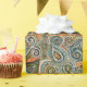 det härliga målade paisley mönster i blått och grönt på orangen med pricker och virvlar runt gör detta det kalla mönster som slår in papper.