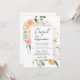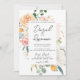 Vacker inramad blommig inbjudan med orange, persika, rosa blommor och guldaccenter