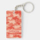Tyck om denna roligt- och snyggtkeychainpersonlig med ett namn och en färgrik moderiktig camodesign. Denna kamouflage är original- konst skuggar in av orangen, och korall färgar A lätt - den orange remsan ger ett område för att personifiera med ditt namn, monograminitialer eller annan ord av ditt primat liksom affärsnamn eller ordstäv. Denna gulliga och moderiktiga camodesign är vid konstnären och tyg märkes- Phyllis Dobbs och är tillgänglig i röd, för turkos, för blått, för limefruktgrönt, oliv grönt, rosa, grå färg- och bruntcamo på olika produkter för din njutning eller för underbara gåvor. Ha roligt med kamouflage! Fullständigt anpassade för monogrammärkning.