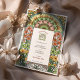 Den här krävande inbjudan "Spara datum" från Art nouveau har en sjudande blommigt med mjuka orangar, daisy med gyllene gulter och delikata rosa-accenter. Den intrikata bågen, som är försedd med elegant botaniskt mönster och ett strålande solbränsmotiv, skapar ett bedövande vintage-inspirerat ram. Löv och kortsiktiga arbetsinsatser för flytande grönt återspeglar den tidlösa charmen och sofistikeringen av stil i Art nouveau. Perfekt för par som vill ha ett naturinspirerat, romantiskt bröllop-meddelande som kombinerar konstnärlig elegans med botanisk skönhet.