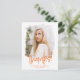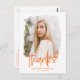 Orange | Preppy Script Photo Studenten Tack Vykort