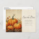 Spara datumet på vykort med en rustik illustration med orange pumpa och höstlöv. En rustik grunge-stil.