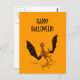 Lustigt fantasi-varelse med pumphuvud och vingar - en söt tecknad drake som kommer ut ur sitt luder vid halloweennatten