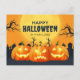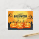 Fira Halloween i i stil med detta pookyvykort för orange som innehåller glödande pumpor, fullt, och hemsökt träd. Perfekt för att skicka hälsning eller för att använda som inbjudan till Halloween fest. Baksidan lämnas tom för din egen anteckning eller anpassningsbar. Enkel att anpassa datum eller år för att passa din händelse.