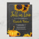 Rustik modern gult och bränd orange-handmålade solblommor och pumpa Fall i Kärlek inbjudningskort för möhippan med chic gyllene skriptskript på en mörk grått-kolkritbakgrund. ++++ Lämpligt för höstfall möhippa party.