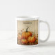 Ett mugg med en rustik illustration med orange pumpor och höst löv. En höstgrunge vibe.