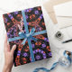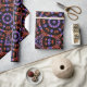 This striking wrapping paper features a bold orange and purple kaleidoscope fractal pattern arranged in a seamless geometric repeat. Intricate symmetrical shapes and layered textures create a dramatic design that blends abstract symmetry, psychedelic color, and modern digital art into a vibrant decorative pattern.