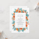 This design features a cluster of vibrant orange poppies and lush teal foliage. The watercolor aesthetic creates an airy and romantic mood perfect for a warm weather event. Bright tangerine petals are complemented by delicate greenery and budding wildflowers against a clean white backdrop.