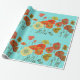 Orange Red Poppies Aqua Watercolor Wrapping Papper Presentpapper