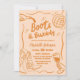 Orange Retro Boots och Bubly Möhippa Inbjudningar
