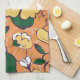 Orange Retro Botanical Yellow Flowers Custom Name Kökshandduk