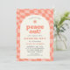 En inbjudan till studentfest inspirerad av 70-talets återdesign. Den här inbjudan innehåller en mörk orange--styrkort mönster som skapar en groovy look - perfekt för en groovy studentfest! "Frihet ut" från ord finns i ett retrotypsnitt för att slutföra utseendet.