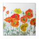 Orange Röd Vallmo Akvarell Blommönster Konst Kakelplatta