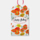 Orange Röd Vallmo Blommönster Akvarell Bröllop Presentetikett
