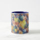 Ett färgrikt, abstrakt mönster med många hjärtformer i varierande storlekar. Hjärtana är fyllda med en blandning av färger som gul, blå, rosa och orange, mot en texturerad, mångfärgad bakgrund med vattenfärgeffekt. Hjärtana har ett något präglat utseende med en texturerad yta, vilket ger djup åt bilden