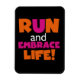 Springa och Embrace Life-text T-shirts, hookar, magneter, muspekare, kort, klistermärken, nyckelringar, knappar, magneter, pappra tallrikar och blöjor, presentsäckar, godis, klockor och många andra artiklar med en klar rosa- och orange-utformning. De här körda temaprodukterna ger underbara gåvor till alla som springa för roligt, springa-spår, maratoner, halvmaratoner, 10 Ks eller 5 Ks!