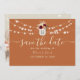 Meddela början på din moderna boho firande med vår elegant spara datuminbjudan. Strålningskaraktär i pulserande orangar, försedd med personlig monogram, exquisite water color burgundy blommor in mason burk och twinkling string ljus. Avslutat med trendigets calligraphy-skript är det introduktionen av perfekten till din fantastiska dag.