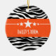 Trendig och modernt Sassy Star Zebra-prydnadsämne med en chic svart och vit zebra tryck-bakgrund och en fet orange gräns med en roligt stjärnmotiv. Den här giftiga designen kan anpassas med den personlig du väljer. Klicka på Anpassa om du vill söka efter fler anpassningsalternativ.