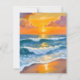 Orange Sea Sunset Watercolor Ocean Waves Painted Card