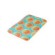 Ett mönster av färsk och saftig orange segment i djupa skuggor av tangerin orange och röd orange, med en vattenfärg struktur mot ge som nyklippt utseende. De placeras på en ljusblå bakgrund så att de kan se ljusa ut.