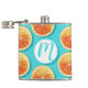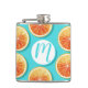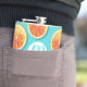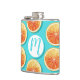 Ett mönster av färsk och saftig orange segment i djupa skuggor av tangerin orange och röd orange, med en vattenfärg struktur mot ge som nyklippt utseende. De placeras på en ljusblå bakgrund så att de kan se ljusa ut.