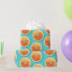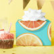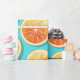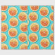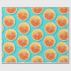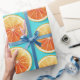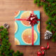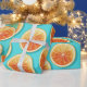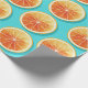Ett mönster av färsk och saftig orange segment i djupa skuggor av tangerin orange och röd orange, med en vattenfärg struktur mot ge som nyklippt utseende. De placeras på en ljusblå bakgrund så att de kan se ljusa ut.