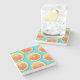 Ett mönster av färsk och saftig orange segment i djupa skuggor av tangerin orange och röd orange, med en vattenfärg struktur mot ge som nyklippt utseende. De placeras på en ljusblå bakgrund så att de kan se ljusa ut.
