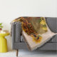 Ett liv som fortfarande finns i en tin basket fylld med orange solblommor med en texturerad bakgrund.