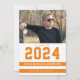 Den här färgstarka fotoinbjudan innehåller ett vågrät-foto och accentueras med sportig orange och vit rand. Skuldåret är stort ovanför student namn.