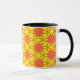 En roligt mönster av orange startar blommigtens geometriska former på en ljus gult bakgrund!