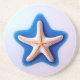 An illustration of an orange starfish with its blue silhouette. The illustration makes the starfish look like it is underwater.