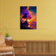 Orange Sunset Himlar över vatten med Lila Träd Poster