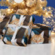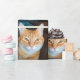 Porträtt av en vaken orange- och vittabby på en blåttfilt som är säkert att komma med ett leende till din favorit- kattälskare