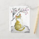 En söt orange tabby katt blöder upp solljus på blommar nära plommon sten. Ursprunglig kinesisk penselmålningsdesign av Ren Adams.