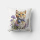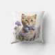 Söt accentkudde, med vattenfärgskonst av en orange tabby kattunge, med en lila fläsk och sittande i en säng eller lila blommor. Undergift för alla kattälskare.