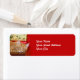 Orange tabbykattungeväntningar tålmodigt bredvid etikett för returadress för julklappfotojul