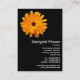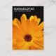 En visitkortsdesign med en attraktiv orange tagetes-design. Företagets detaljer på framsidan med namn, titel och andra kontaktuppgifter på baksidan med ett mindre tagetes-motiv