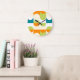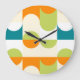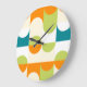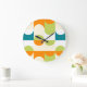 Orange Teal Blå Limegrön Retro Art Mönster Stor Klocka
