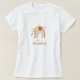 Den här snygga t-shirt-skjortan har handskript för trendig boho stil och trendig. En terracotta och en söt målad regnbåge av neutralt dekoreras med orange och persikofärgade blommor på en vit bakgrund, och skjortan säger "mamma" med en punkt för att lägga till din baby namn. Perfekt för det nya mor till bära till hennes babydusch.