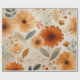Watercolor rustic wrapping paper with orange terracotta tones, yellow accents, flora, and greenery. Perfect for spring, summer, or autumn gifts for girls, boho lovers, or stylish nature-themed occasions.