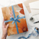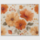 Watercolor rustic wrapping paper with orange terracotta tones, yellow accents, flora, and greenery. Perfect for spring, summer, or autumn gifts for girls, boho lovers, or stylish nature-themed occasions.